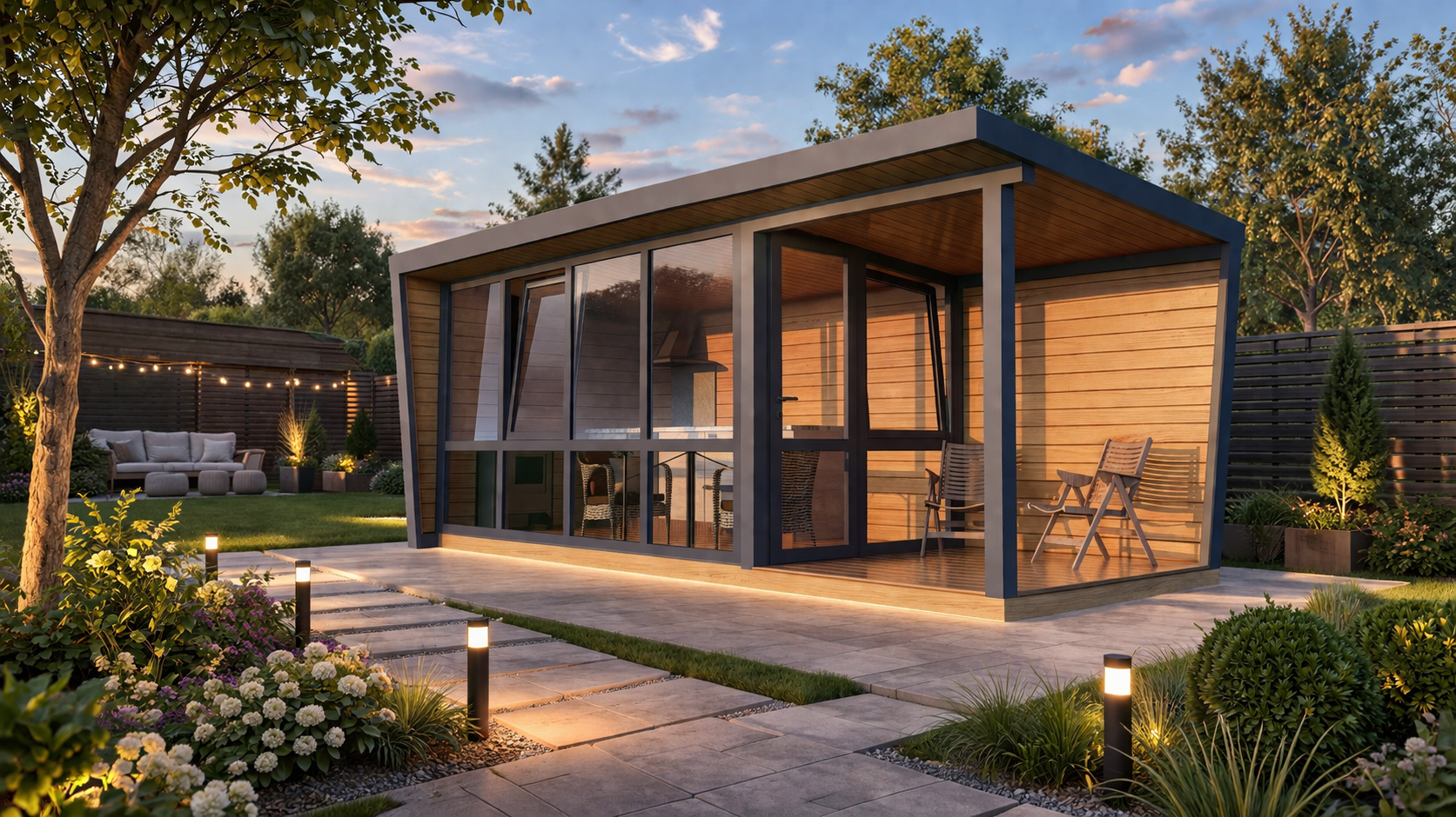 По желанию устанавливаются ПВХ или алюминиевые окна с двух- или трёхкамерным стеклопакетом.